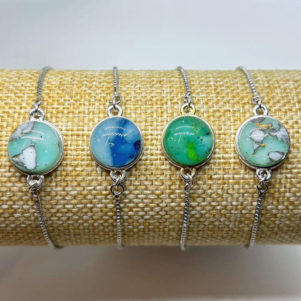 Folly Beach Silver Sand Infused Round Slide Bracelet by eluCook Desi